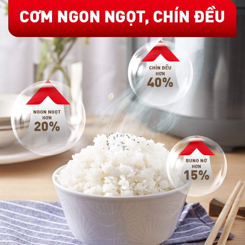 🔵 14 chương trình nấu chuyên dụng: gạo trắng, cơm niêu, gạo lứt, gạo Nhật/Sushi, gạo nếp, gạo basmati, gạo hỗn hợp, cháo/súp, nấu chậm, bánh ngọt, hấp, nấu nhanh, hâm nóng, giữ ấm, 2 chọn lựa loại gạo: bình thường, dẻo