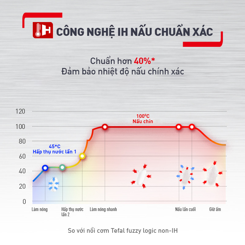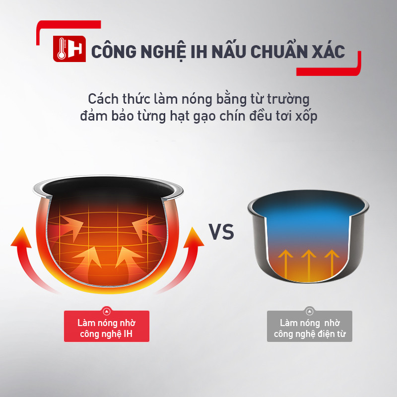 🔵 Công nghệ cao tần chuẩn xác - Precision IH – Chuẩn xác hơn 40% - đảm bảo nhiệt độ tối ưu cần thiết cho mỗi giai đoạn nấu.