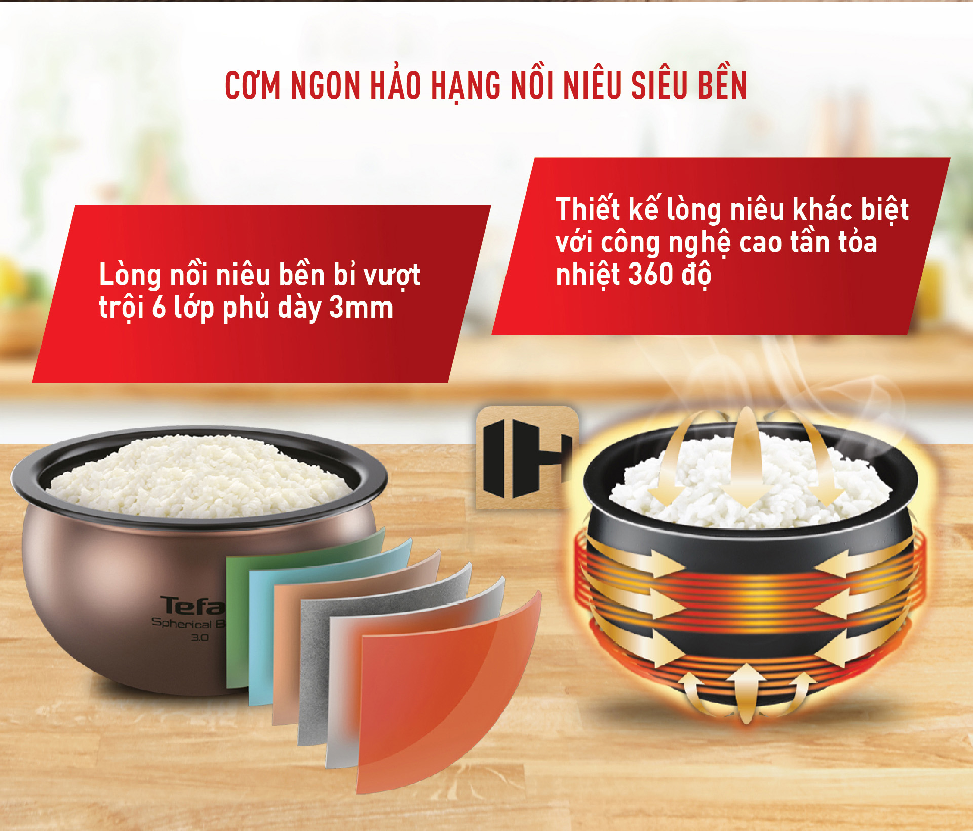 🔵 LÒNG NỒI NIÊU DÀY: 3.0mm, 6 lớp